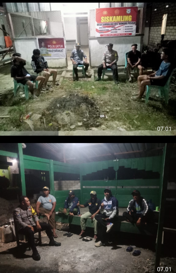 Dalam pelaksanaan kegiatan, Bhabinkamtibmas memberikan arahan kepada petugas jaga Pos Kamling agar melaksanakan tugas pengamanan sesuai dengan aturan yang berlaku.