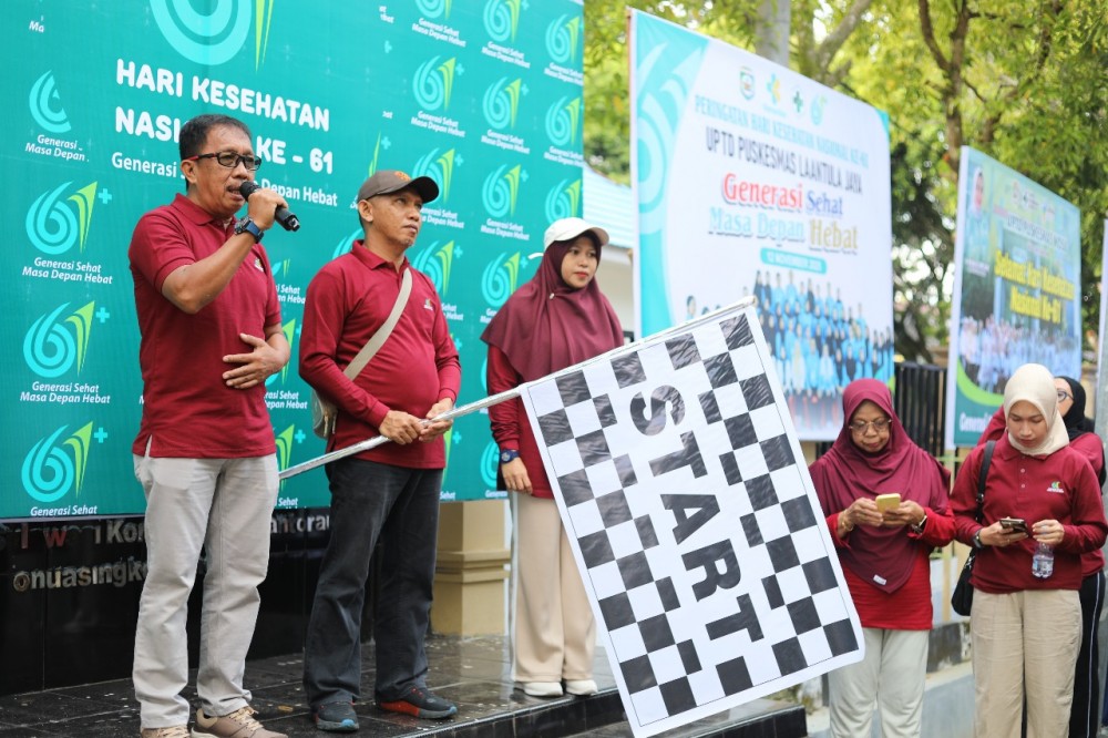Peringatan HKN diawali dengan giat Jalan Sehat dan Senam Bersama yang mana seiringan dengan tema yang diusung ” Generasi Sehat, Masa Depan Hebat “, menjadi sebuah implementasi nyata yang dapat kita lihat dan terapkan dikehidupan sehari-hari dalam bermasyarakat. Jalan santai dan senam bersama yang diikuti oleh ratusan peserta ini bertujuan agar meningkatnya kesadaran masyarakat akan pentingnya menjaga kesehatan serta gaya hidup sehat.