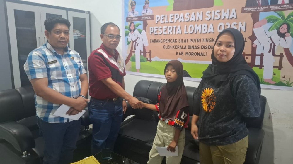 Morowali, Hariannet.co.id- Pemerintah Kabupaten (Pemkab) Morowali melalui Dinas Pendidikan Daerah secara resmi melepas salah satu siswi berprestasi yang akan mewakili daerah pada ajang Olimpiade Olahraga Siswa Nasional (O2SN) tingkat nasional cabang pencak silat putri di Kota Depok, Provinsi Jawa Barat yang akan berlangsung sejak tanggal 9 hingga 14 November 2025.