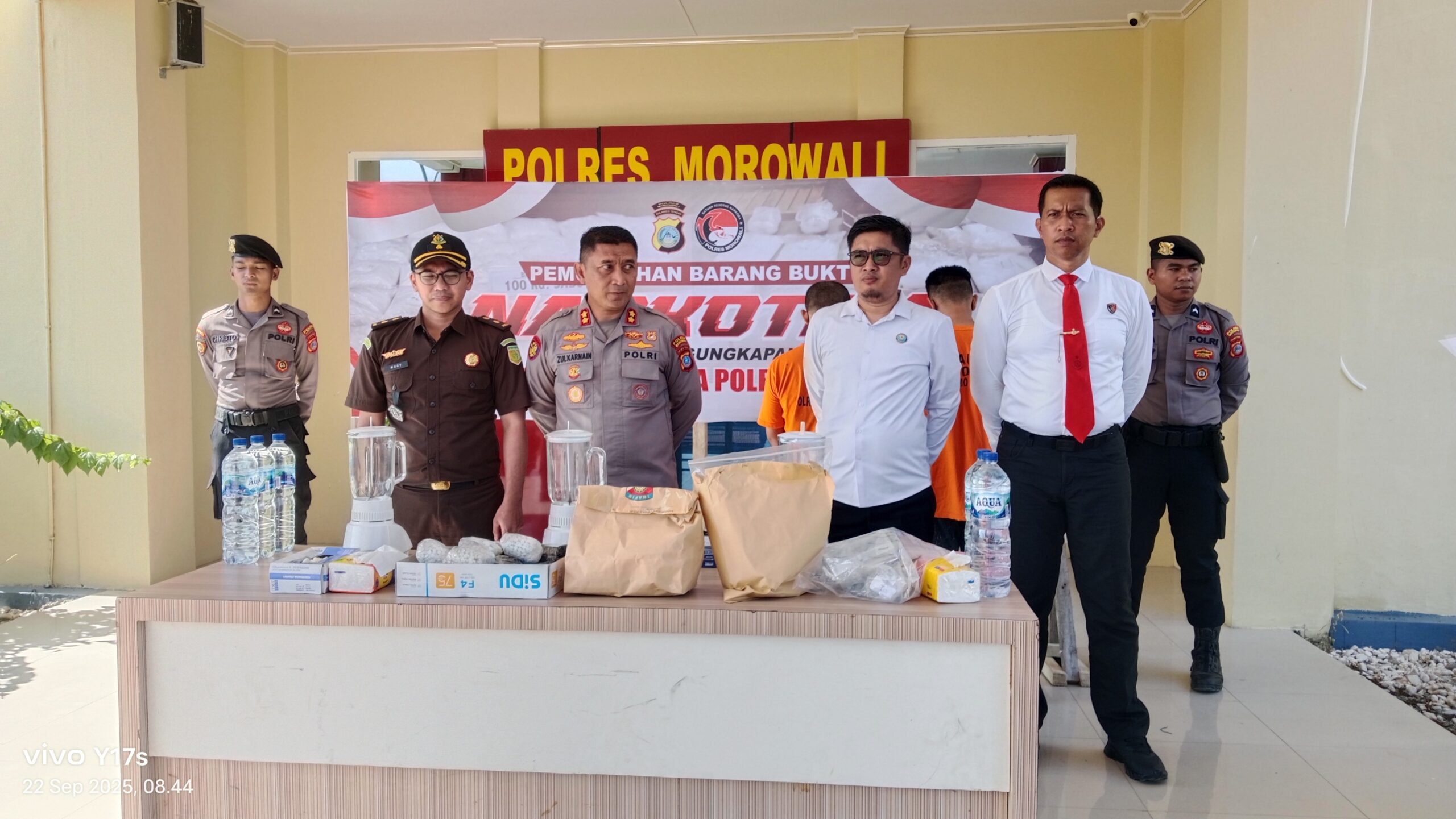 Morowali, Hariannet.co.id- Polres Morowali menggelar pemusnahan barang bukti narkotika hasil ungkap kasus Satuan Reserse Narkoba. Kegiatan ini dipimpin langsung oleh Kapolres Morowali, AKBP Zulkarnain, S.H., S.I.K., M.H., didampingi Kasat Narkoba IPTU I Komang, Kejaksaan Negeri Morowali, serta Badan Narkotika Nasional Kabupaten (BNNK) Morowali, Senin(22/09/2025)