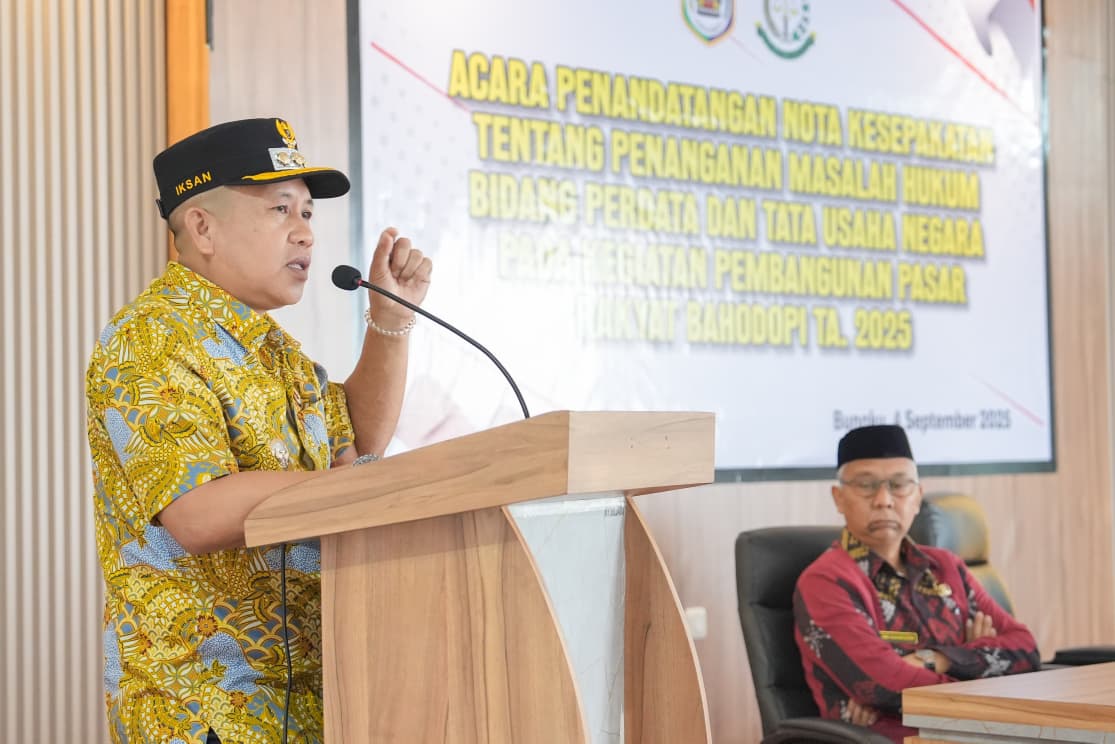 Bertempat di Aula Hotel Soldadu, Bente, Bungku Tengah, dan dihadiri oleh Kepala Kejaksaan Negeri Kabupaten Morowali, Naungan Harahap dan Kadis Perindustrian dan Perdagangan Andi Kaharudin, Iksan memberikan pesan penting kepada seluruh pihak yang hadir di acara penandatanganan nota kesepakatan tentang penanganan masalah hukum bidang perdata dan tata usaha negara pada kegiatan pembangunan Pasar Rakyat Bahodopi tahun anggaran 2025.