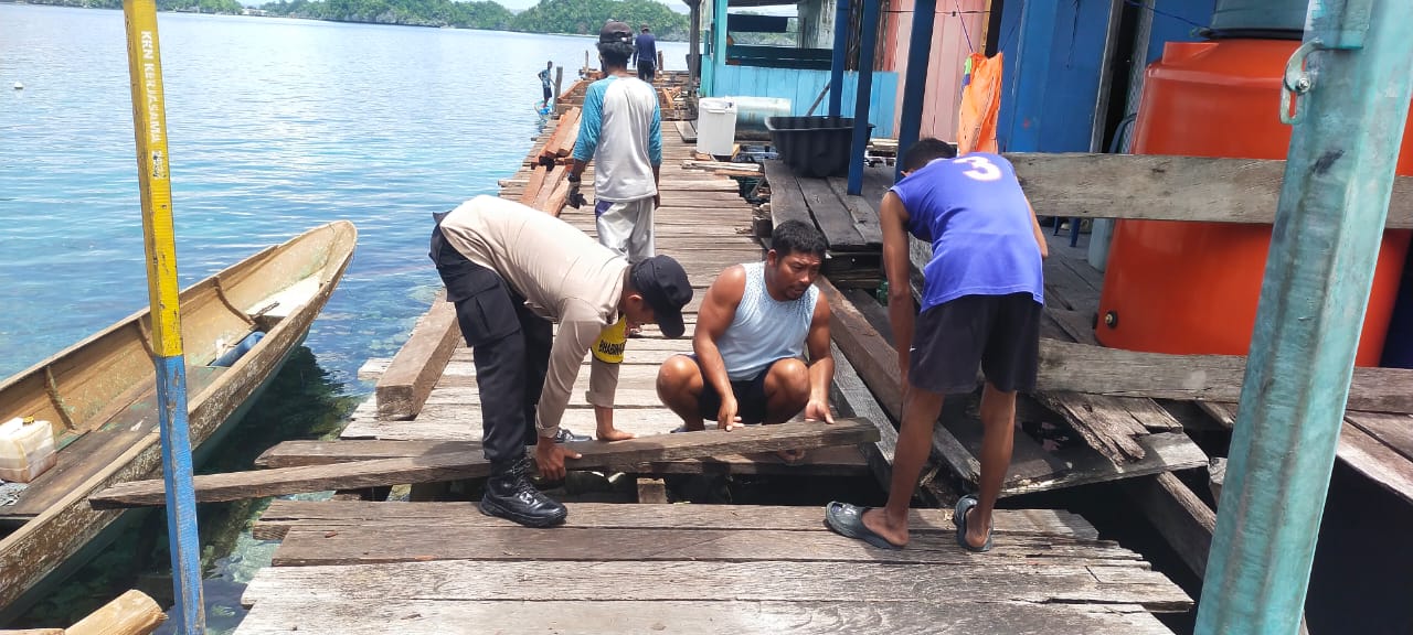 Dalam kegiatan yang berlangsung sejak pukul 09.00 WITA tersebut, Brigpol Mujahidin Diar tidak hanya menyampaikan pesan-pesan kamtibmas, tetapi juga turun langsung bersama warga membenahi jalan kayu yang mengalami kerusakan. Perbaikan ini bertujuan agar jalur akses warga lebih aman dan layak digunakan, mengingat jalan tersebut merupakan salah satu sarana vital masyarakat pesisir.
