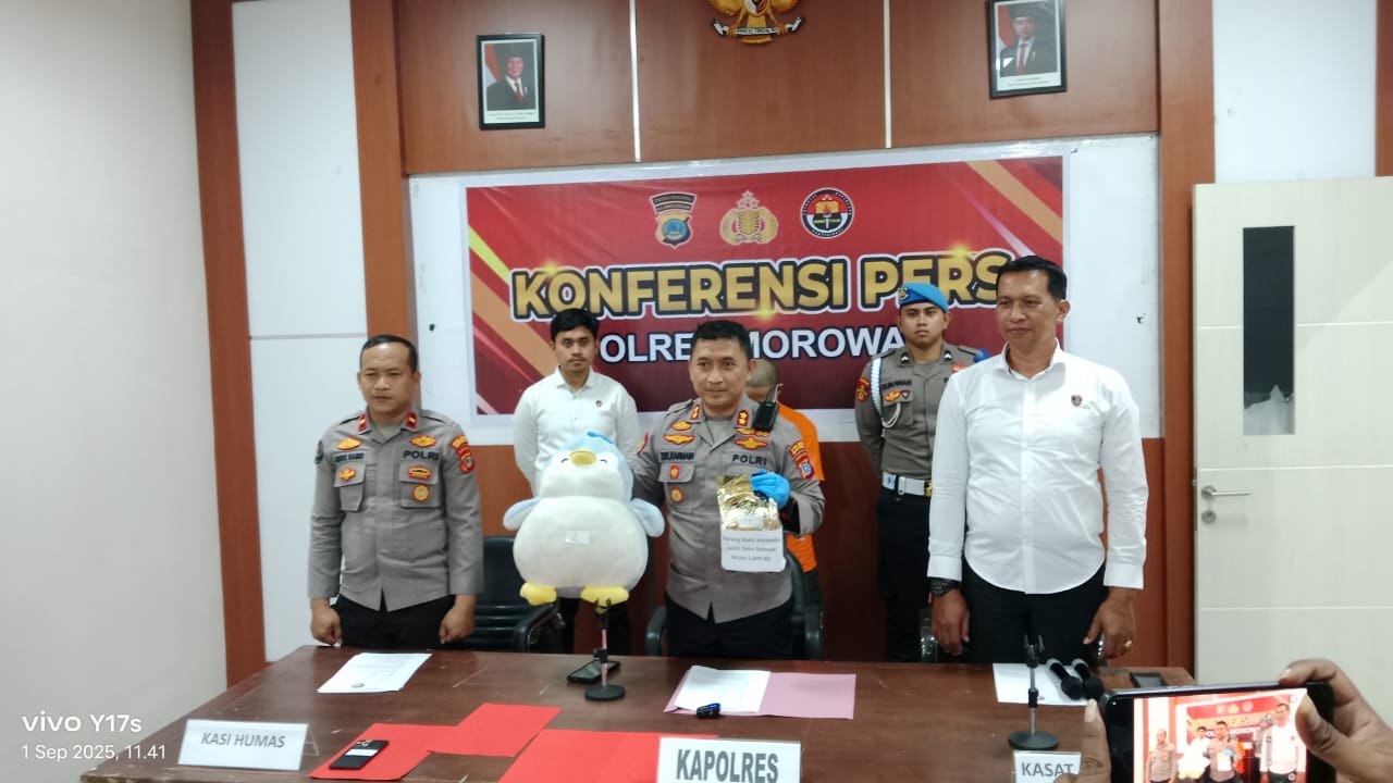 Pengungkapan ini disampaikan Kapolres Morowali AKBP Zulkarnain, S.H., S.I.K., M.H., dalam konferensi pers pada Senin (1/9/2025). Turut mendampingi Kasat Narkoba IPTU I Komang Darmawa Adi, S.H., dan Kasi Humas IPDA Abd. Hamid, S.H.