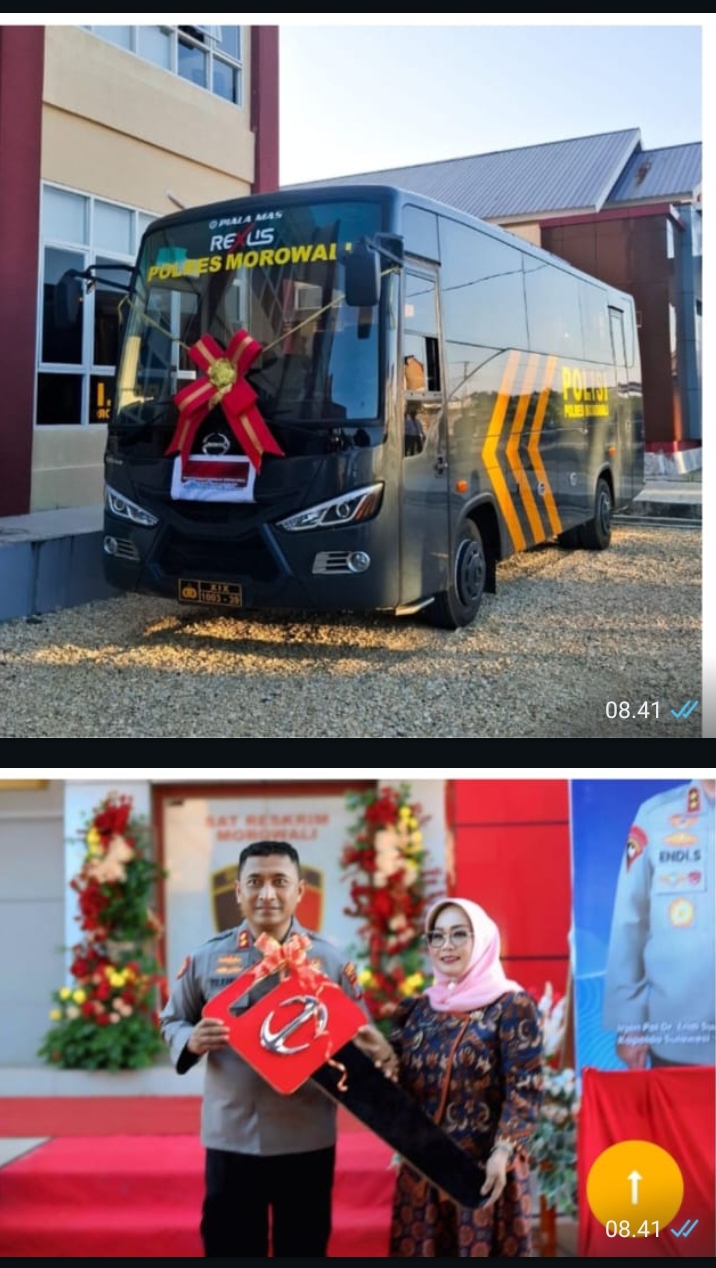 Wakil Bupati Morowali Menyerahkan Bantuan 1 Unit bus Kepada Polres Morowali Bentuk Dukungan Pelayanan Kepada Masyarakat.
