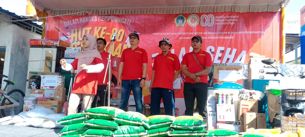 Gresik, Hariannet.co.id- Suasana pagi di depan pendopo Balai Desa Mojopuro Wetan Kecamatan Bungah Kabupaten Gresik begitu semarak. Pasalnya ribuan warga setempat mengikuti jalan sehat dalam rangka HUT Kemerdekaan RI ke 80 Tahun.